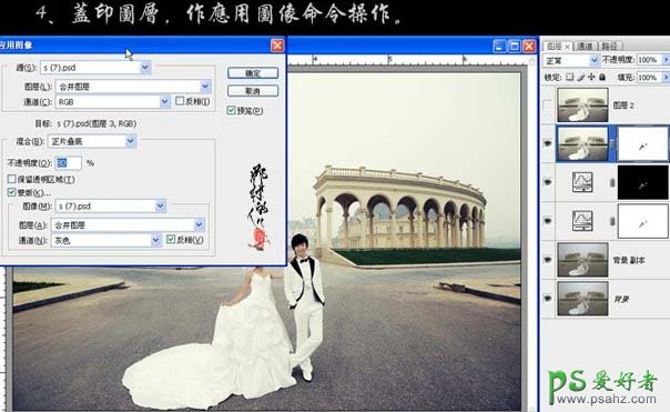 4、新建一个图层,按Ctrl + Alt + Shift + E 盖印图层,执行:图像 > 应用图像操作,参数设置如下图。