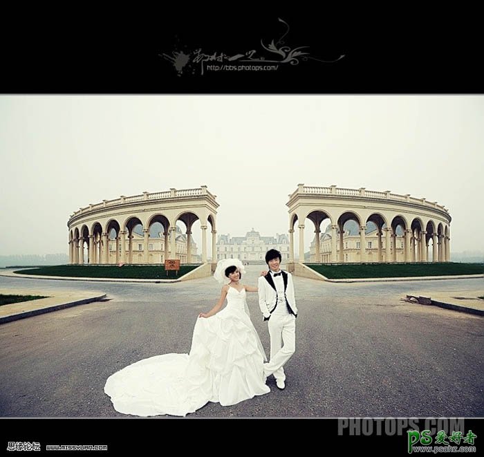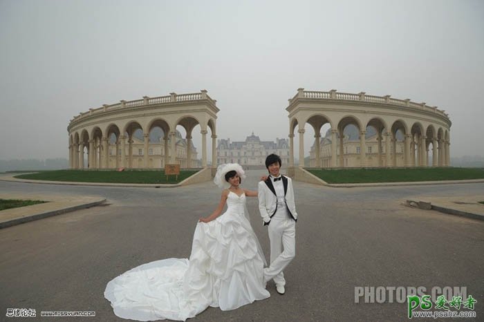 PS婚片调色教程实例,PS快速调出灰度艺术色彩少男少女婚纱艺术照,偏灰的照片处理起来比较麻烦。由于图片的光线比较暗,颜色细节基本上都丢失。最快的处理方法,不需要保持原图的基调,调出其它风格或颜色即可。
