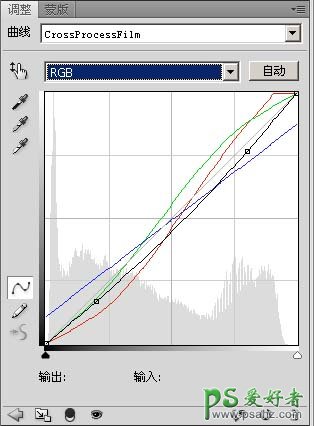 7、将渐变填充层2的混合模式设为“叠加”,不透明度设为“50”。 8、图层 >> 新建调整图层 >> 曲线,并按下图绘制曲线。注:黑色曲线对应RGB通道,红、绿、蓝分别对应该色通道。