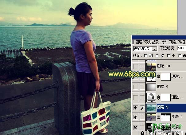 利用PS给一张中年妇女海景照调出金色黄昏效果