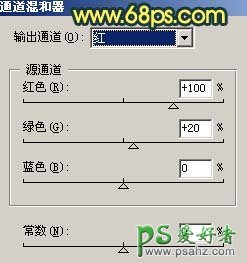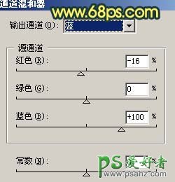 混合器调整图层,对红色及蓝色进行调整,参数设置如图7,8,确定后把图层不透明度改为:30%,效果如图9。