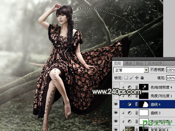 Ps给碎花裙美腿女生艺术照调出唯美的黄褐色,森系美女后期调色。