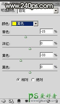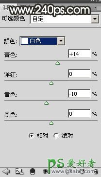 2、创建可选颜色调整图层,对黄色、绿色、白色进行调整,参数设置如图2 - 4,效果如图5。这一步给图片增加橙黄色。