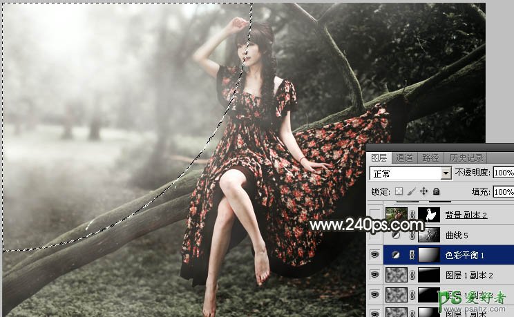 10、创建色彩平衡调整图层,对阴影、中间调、高光进行调整,参数设置如图16 - 18,确定后把蒙版填充黑色,然后用透明度较低的柔边白色画笔把左上角区域涂出来。这一步微调高光颜色。