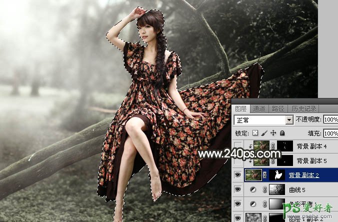 11、把背景图层复制一层,按Ctrl + Shift + ] 置顶,用钢笔工具把人物部分抠出来,转为选区后添加图层蒙版,如下图。
