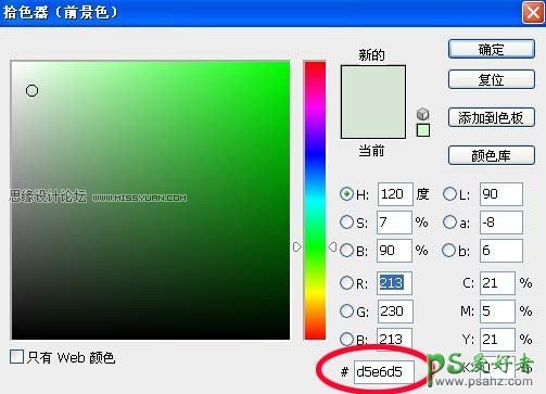 3、新建一空白层,填充颜色:#d5e6d5,混合模式:正片叠底。