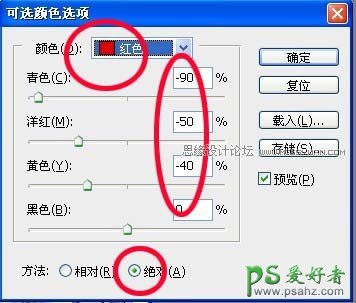 2、创建可选颜色调整图层,对红色进行调整,参数设置如下图。