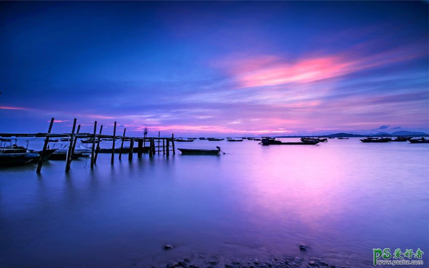 PS风景照调色实例:给平静的湖景照片加上唯美的日出效果。