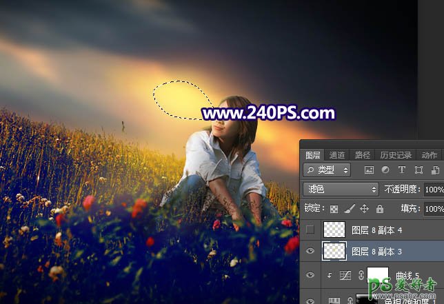 24、渲染高光。新建一个图层,用套索工具勾出下图所示的选区,羽化25个像素后填充橙黄色#FAD509,取消选区后把混合模式改为“滤色”。