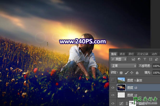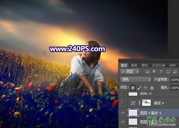 26、最后微调。用光晕笔刷加上光晕,再用模糊工具把远处草地模糊处理,如下图。