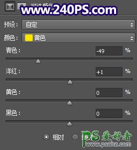 PS调色教程:学习给山坡上自拍的漂亮淑女图片调出黄调晨曦色彩。后期微调人物光影,再加上暗角等,得到想要的效果。 最终效果 原图 1、给草地部分增加暖色。打开原图素材大图,创建可选颜色调整图层,对黄色,绿色进行调整,参数及效果如下图。 2