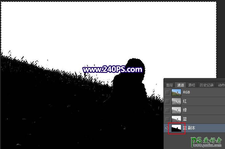 11、按Ctrl键 + 鼠标左键点击蓝副本通道缩略图载入选区,如下图。