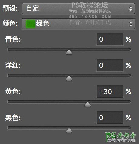 2、利用可选颜色中的绿色,加一点点黄,黄绿色比翠绿色视觉上更为舒适。