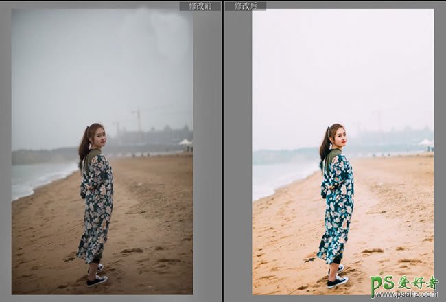 PS摄影后期调色教程:结合LR软件给海景美女照片调出电影胶片效果