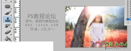 盖印可见图层(CTRL+ALT+SHIFT+E),用图章工具按ALT键取样,盖掉背景中的杂物。