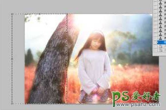 我这里盖得比较随意,你们可以细致一点,然后矩形选框工具把树干选中,按CTRL+T自由变换往左拉,画面看着平衡一点。
