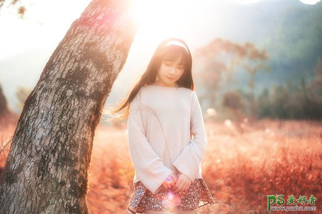 Photoshop给清纯女生外景照片调出唯美的暖色逆光效果。