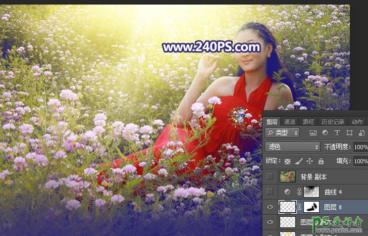21、新建一个图层,用笔刷加上透射光束,如下图。