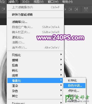 > 像素化 > 彩色半调,参数默认,确定后效果如下图。