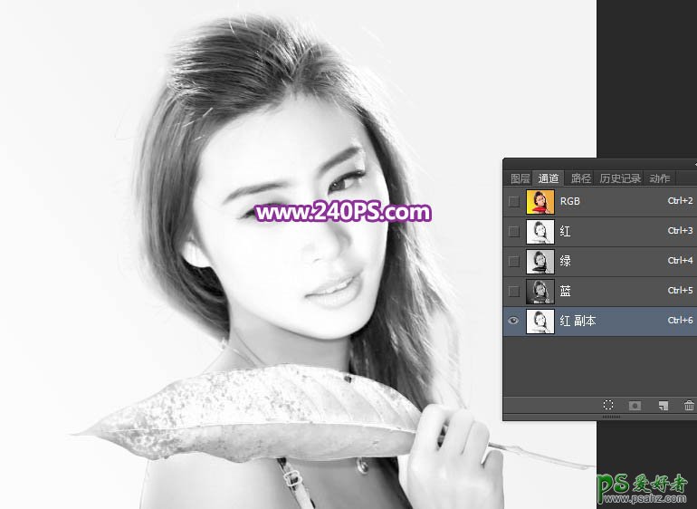 17、进入通道面板,把红通道复制一份,得到红副本通道,如下图。