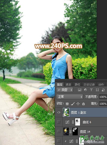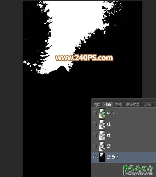 12、进入通道面板,把蓝色通道复制一层,并按Ctrl + L 对蓝副本通道调整色阶,把天空调白,其它部分压暗;确定后再用柔边黑色画笔把天空以外的区域涂黑。