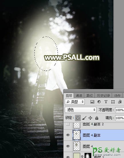 10、新建一个图层,用椭圆选框工具拉出下图所示的选区,羽化30个像素后填充黄褐色#908F7D,取消选区后把混合模式改为“滤色”,如下图。