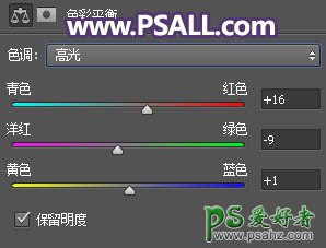 3、高光区域增加暖色。按Ctrl + Alt + 2 调出高光选区,然后创建色彩平衡调整图层,对高光进行调整,参数及效果如下图。
