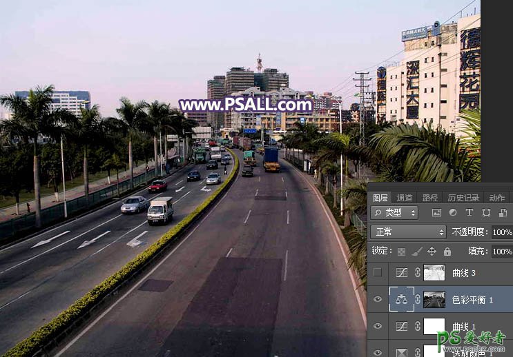 Photoshop给城市公路风景图片调出暖暖的日出效果,色彩有层次感