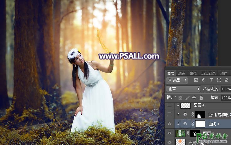 Photoshop给森系婚纱美女艺术照调出柔和的暖色逆光效果