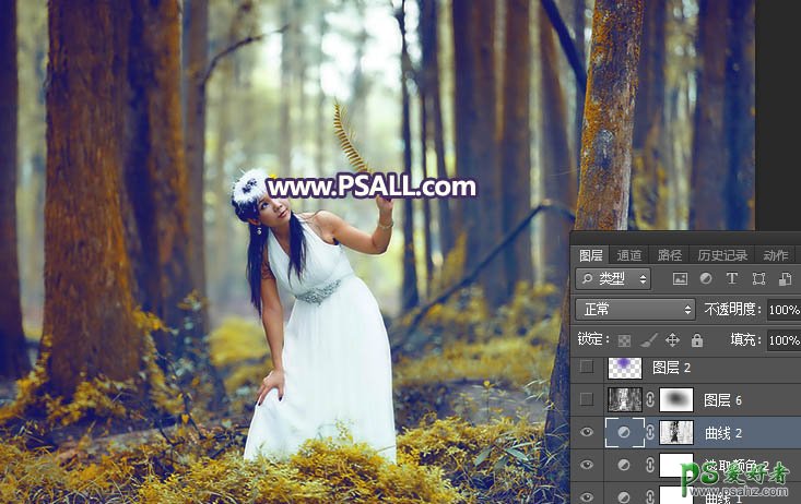 Photoshop给森系婚纱美女艺术照调出柔和的暖色逆光效果