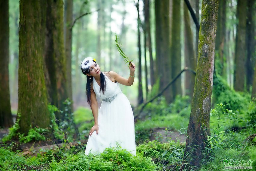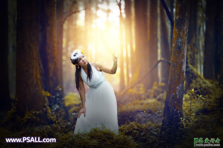 Photoshop给森系婚纱美女艺术照调出柔和的暖色逆光效果