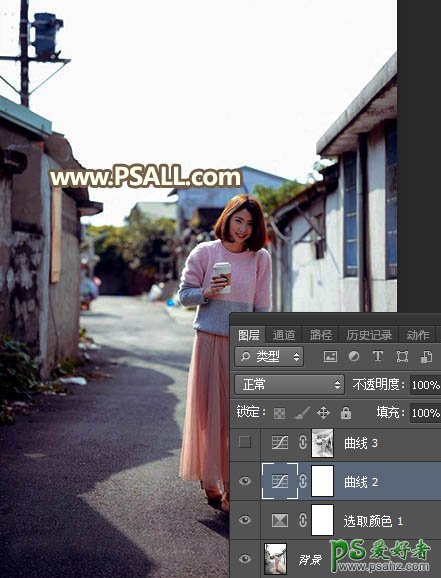 PS调色教程:给清晨农村街道上拍摄的女生照片调出漂亮的逆光效果