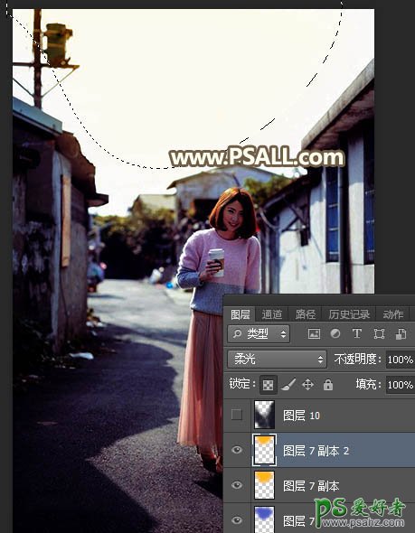 PS调色教程:给清晨农村街道上拍摄的女生照片调出漂亮的逆光效果