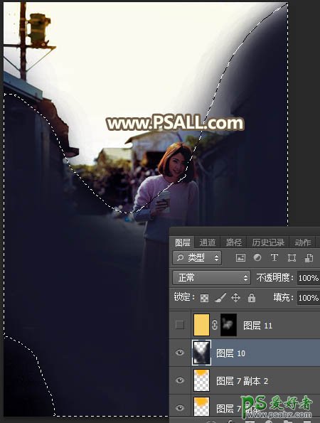7、局部涂暗。新建一个图层,把前景色设置为深蓝色#151728,选择画笔工具,画笔不透明度设置为10%,然后把左右两侧及底部区域大幅涂暗,如下图。