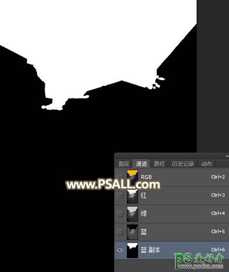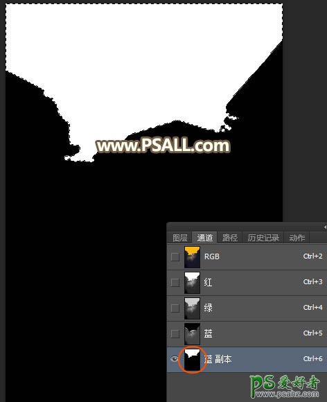 10、按住Ctrl + 鼠标左键点击蓝副本通道缩略图载入选区,如下图。