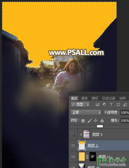 11、点RGB通道返回图层面板,新建一个图层把选区填充橙黄色,再按Ctrl + D 取消选区,局部有空隙的部分用画笔涂抹一下。
