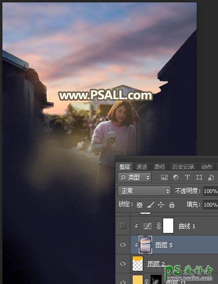 12、打开天空素材,用移动工具拖进来,按Ctrl + Alt + G 创建剪切蒙版。