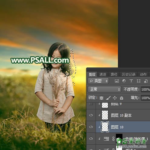 19、新建一个图层,创建剪切蒙版;把前景色设置为淡黄色#FCE38C,然后用透明度为10%的柔边画笔给人物头部右侧受光区域涂上淡黄色,如下图。