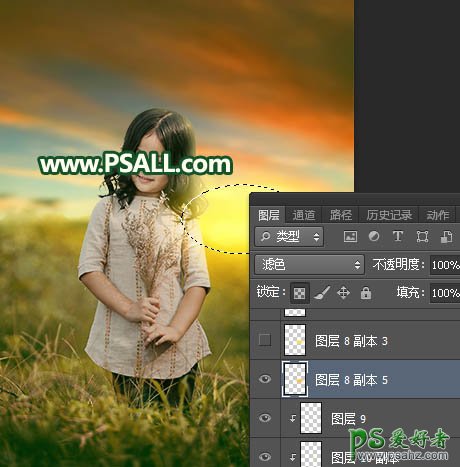 20、局部增加高光。新建一个图层,用椭圆选框工具拉出下图所示的选区,羽化35个像素后填充橙黄色#FEBF01,取消选区后把混合模式改为“滤色”,如下图。