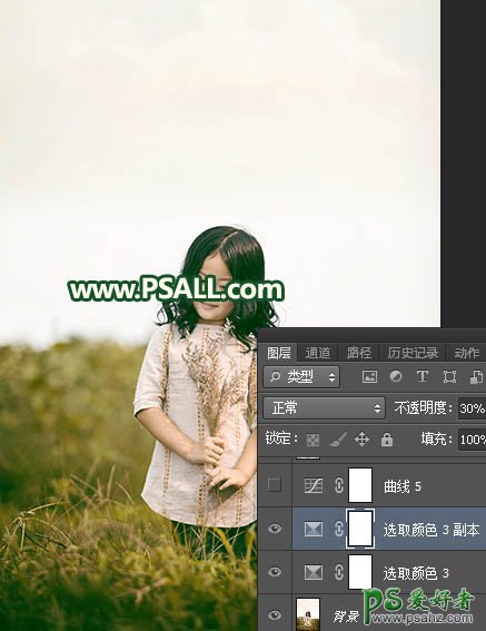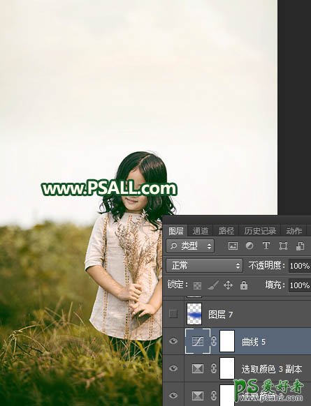 Photoshop给郊外自拍的可爱小女孩儿生活照调出温暖的青黄色
