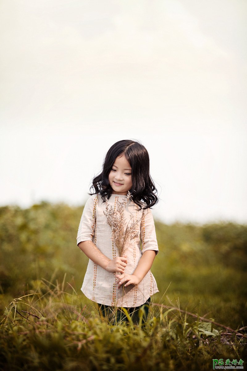 Photoshop给郊外自拍的可爱小女孩儿生活照调出温暖的青黄色,最终效果