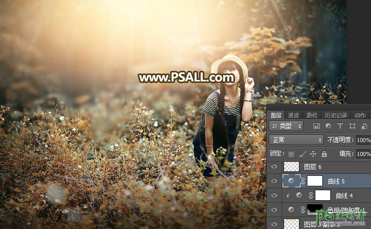 Photoshop给郊外自拍的可爱小女孩儿生活照调出温暖的青黄色