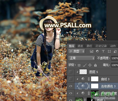 Photoshop给郊外自拍的可爱小女孩儿生活照调出温暖的青黄色