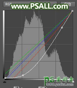 4、把暗部压暗并增加暗青色。按Ctrl + Alt + 2 调出高光选区,按Ctrl + Shift + I 反选得到暗部选区;然后创建曲线调整图层,对RGB、红、绿、蓝通道进行调整,参数及效果如下图。