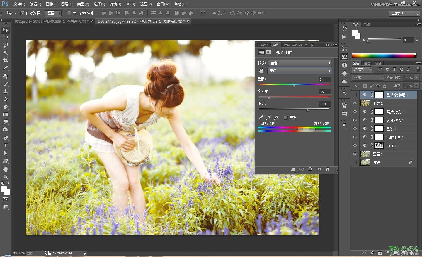 6、创建“色相/饱和度”调整层,对各个颜色进行调整!