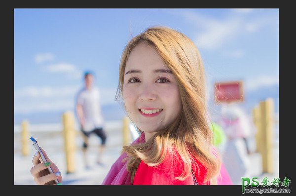 画面后面这个人啊,很抢画面,显得多余了,我们可以用图章工具和修复画笔工具,以及画笔工具对后面这个人物进行处理,这一步我觉得大部分人都应该会吧,要有耐心慢慢的处理。具体思路就是先用图章把多余部分修走,剩下的小部分用修复画笔进行处理,最后用画笔吸色进行画面从新补色添加进去,有些小细节如果修补不回来,就用蒙版擦一下就好了。基本就差不多了,效果如下: