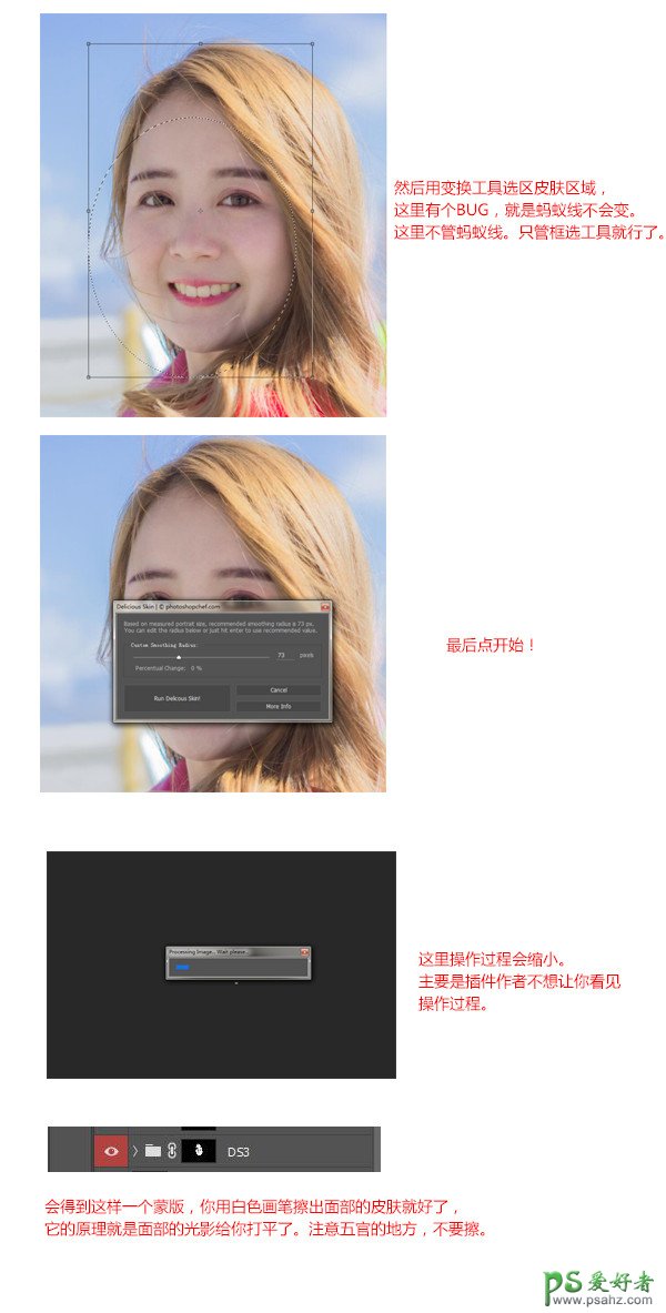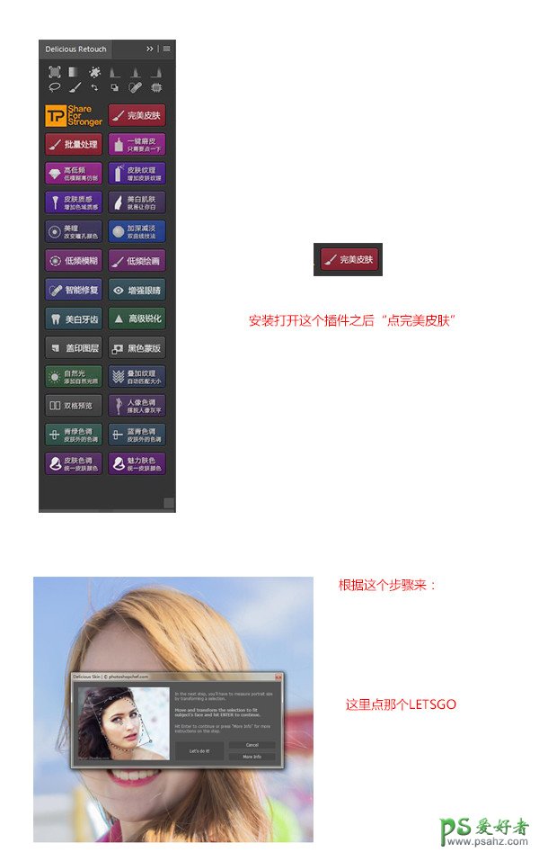 我们做完中性灰之后记得盖印一个图层(Ctrl+Alt+shift+E)在盖印的图层上面做皮肤。安装打开这个插件之后“点完美皮肤”