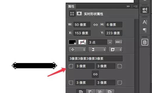 使用属性面板,为线条(矩形)设置一个圆角(参数请不要按截图的,请按你目前的高度多少,就设置多少),这样就得出风速线条~