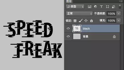 打开PS设计软件,新建文件,并输入「SPEED FREAK」文字,然后选择接近下图的字体,字体特征:瘦(窄)、粗,有点硬朗的气质。