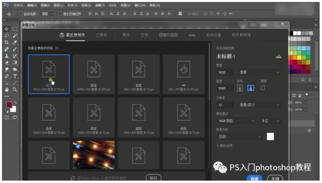 第一步:新建一个1920 X 1080,分辨率72的画布。